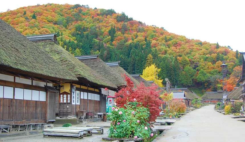 秋天是大內宿色彩最豐富的季節之一,隨著氣溫轉涼,街道周邊山林逐漸染上紅、橙、金黃等秋色,形成溫暖而沉穩的景致。一般來說,大內宿紅葉的最佳觀賞期約落在10月下旬至11月上旬。想延伸自由行的賞楓行程,也可一併參考以下東北各地的紅葉名所整理。