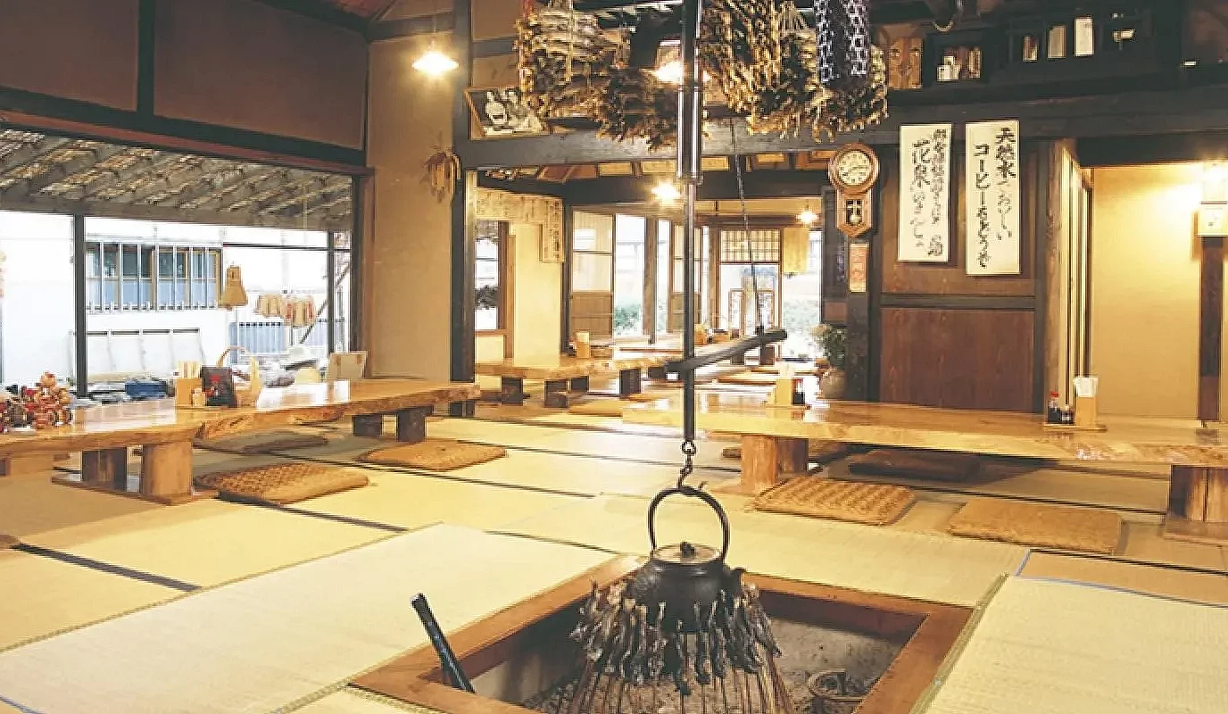 本家扇屋位在大內宿核心街道,走進店內可見黑亮木柱、厚實梁架與圍爐裏陳設,氛圍懷舊又沉穩。餐廳在冬季時會提供溫暖鍋物料理,夏季有供應清爽蕎麥麵,可選蕎麥麵搭配山菜、天婦羅等會津風味小菜,樸實卻耐吃;坐在暖意包圍的室內慢慢享用,更有種回到舊時宿場町的悠閒感。