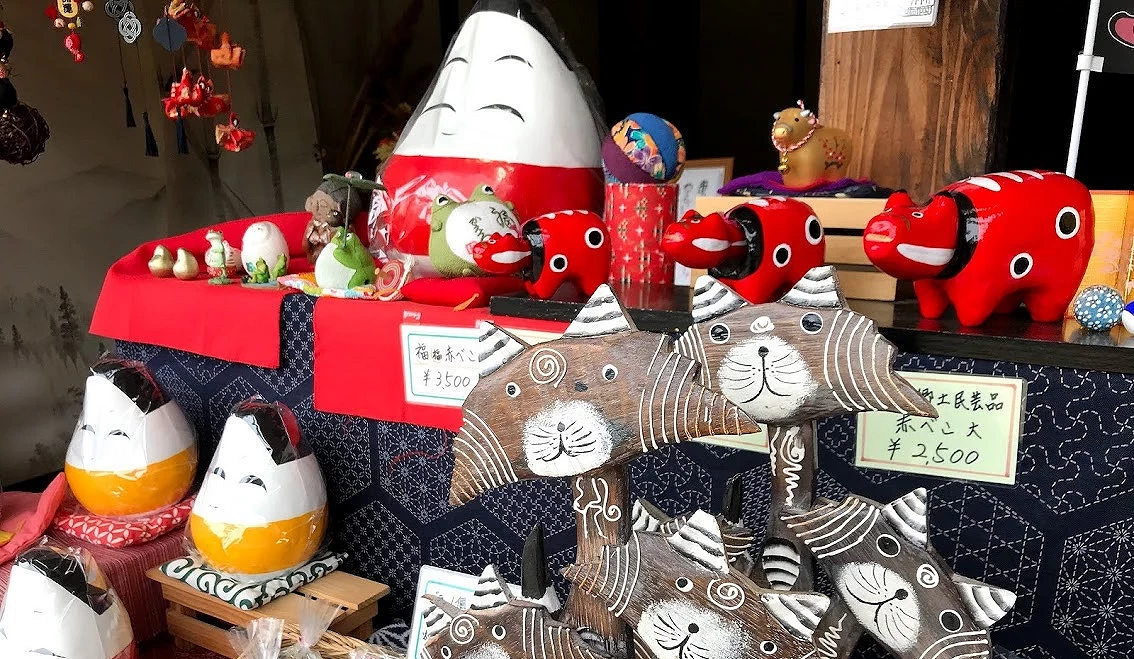 會津漆器是福島代表性的傳統工藝,大內宿內不少店家販售小型漆器製品,如小盤、筷子、茶杯等,價格比大型漆器親切許多,兼具實用性與收藏價值。此外,還有象徵祈福與不倒精神的「不倒翁小法師(起き上がり小法師)」、以手繪圖樣聞名的「會津繪蠟燭」、代表避邪與健康的「紅牛(赤べこ)」等民藝雜貨,以及使用在地陶土燒製的「會津本鄉燒」,都很適合送禮或帶回家當裝飾喔!