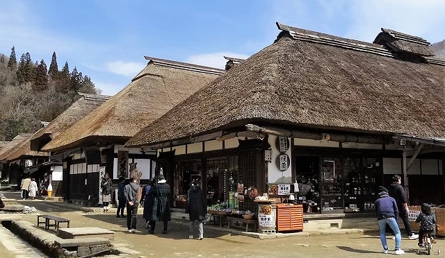 位於福島縣南會津郡下鄉町的「大內宿」,坐落於標高約650公尺的盆地內,四周環繞著高度約1,000公尺以上的奧羽山脈,是日本少數仍保留江戶風情的宿場町。過去這裡是連結會津若松與日光今市之間的重要驛站,周邊聚集供旅人歇腳、補給的設施。如今,約450公尺長的街道兩側依然完整保留約50座茅草屋建築,分布著土產店、蕎麥麵店與茶屋等店家,整體被指定為「重要傳統建造物群保存地區」。