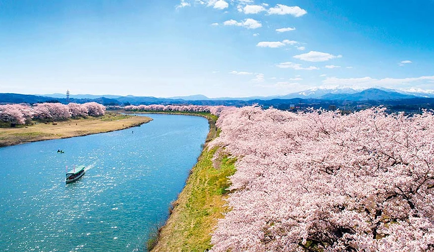 「白石川堤一目千本櫻」入選「日本櫻花名所100選」,可說是東北地區數一數二的人氣櫻花景點,從仙台搭乘電車約30分鐘即可抵達。「一目千本櫻」代表一眼望去就能將千株櫻花樹收入眼簾,這些櫻花樹沿著8公里的白石川綻放,超級夢幻。除了在櫻花樹下散步,也推薦到附近的「船岡城址公園」搭乘小型纜車俯瞰櫻花景色。由於藏王山就在不遠處,天氣好的話還有機會看到一目千本櫻與殘雪藏王山的絕美同框呢!