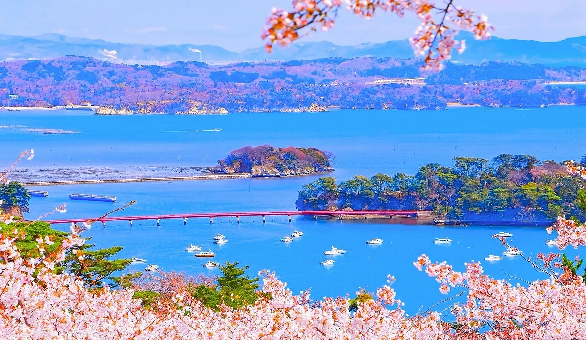 「松島」櫻花每年約在4月中旬至下旬迎來花季,是東北最具代表性的海景賞櫻勝地之一。從「西行戻之松公園」可俯瞰約260棵櫻花與松島灣全景的經典畫面,遠望青松與海面相映的粉色花海令人難忘;沿著高城川櫻並木也能感受河岸漫步的浪漫氣氛。松島周邊還有瑞巖寺、五大堂等歷史景點,到仙台賞櫻別忘了一起安排進去唷!