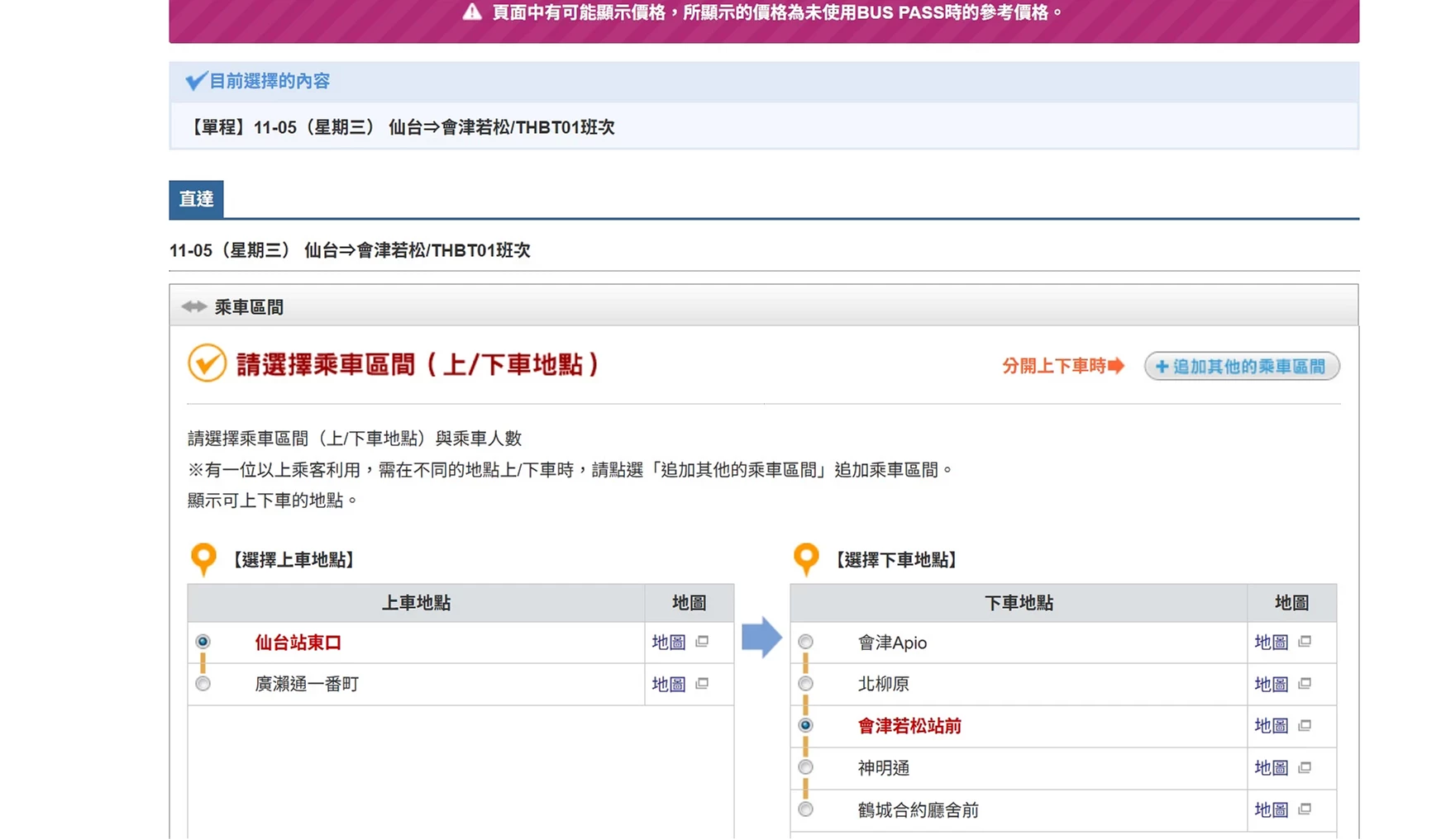 步驟四:選擇班次、上下車地點