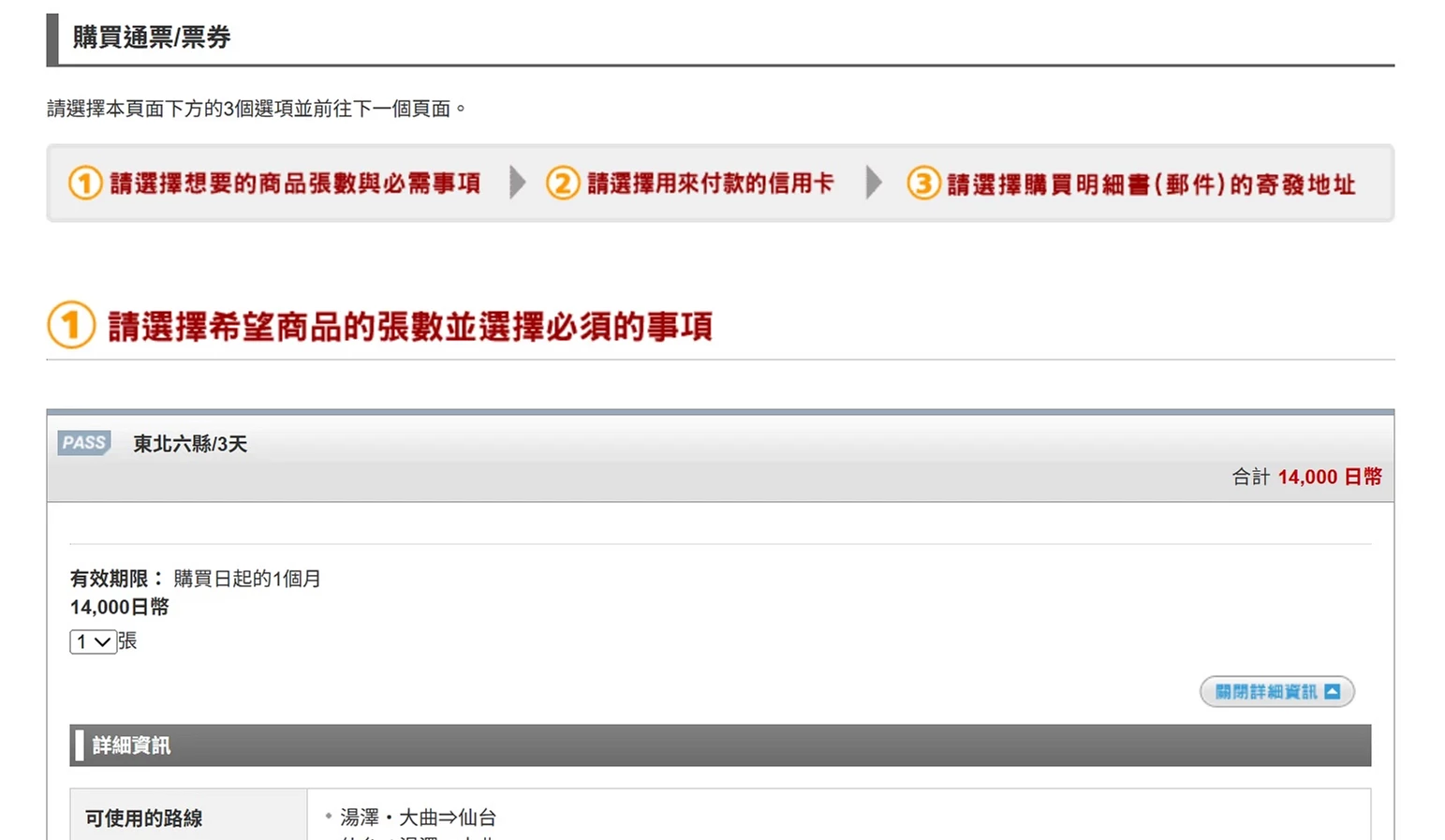 | 東北六縣通票 | 3天 | 14,000日圓 |